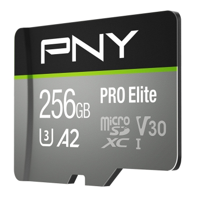 The PNY PRO Elite Class 10, UHS-1, U3, V30, A2 microSD, Flash Card is perfect for the latest smartphones, tablets, action cameras, and drones.