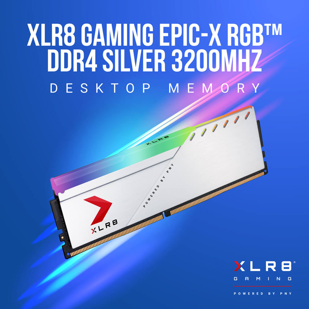 XLR8 Gaming EPIC-X RGB™ Silver DDR4 Memory is designed for gamers and enthusiasts and offers a brilliant RGB design combined with extreme overclocked performance, taking your PC to the extreme. Not only you destroy the competition on the outside, also have good looks on the inside. PNY has your back with its elite DDR4 RGB Silver 3200MHz CL16 desktop memory upgrade. Our most advanced RGB with aluminum heat spreaders of brushed silver and simplistic design.